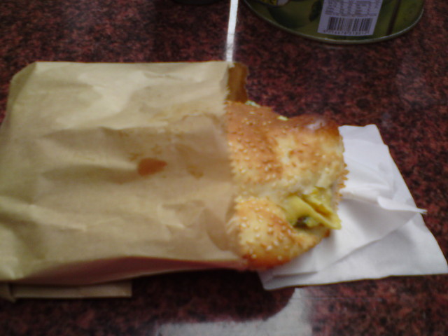 文康市場的燒餅,不但可以夾蛋夾肉,還可以抹果醬喔。我這一份是夾蔥蛋的~